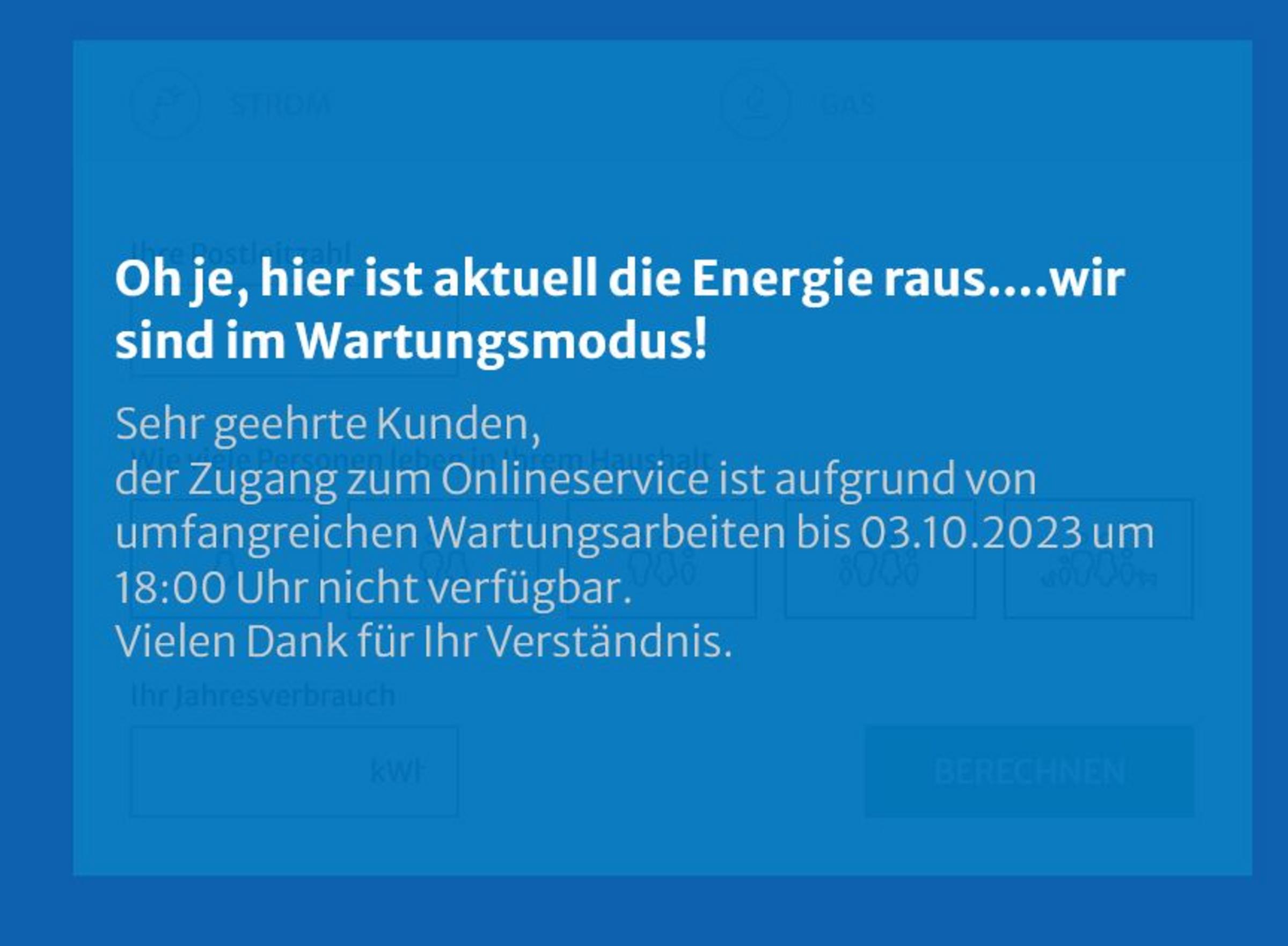 Aufgrund einer Formatanpassung im SAP sind einzelne Funktionen unserer Homepage über das Wochenende nicht verfügbar. Das betrifft den Produktfinder und unser Online-Kundenportal. Die Energie ist uns also nicht ausgegangen, wir verkünden, wenn das neue System installiert ist und die Funktionen wieder laufen.